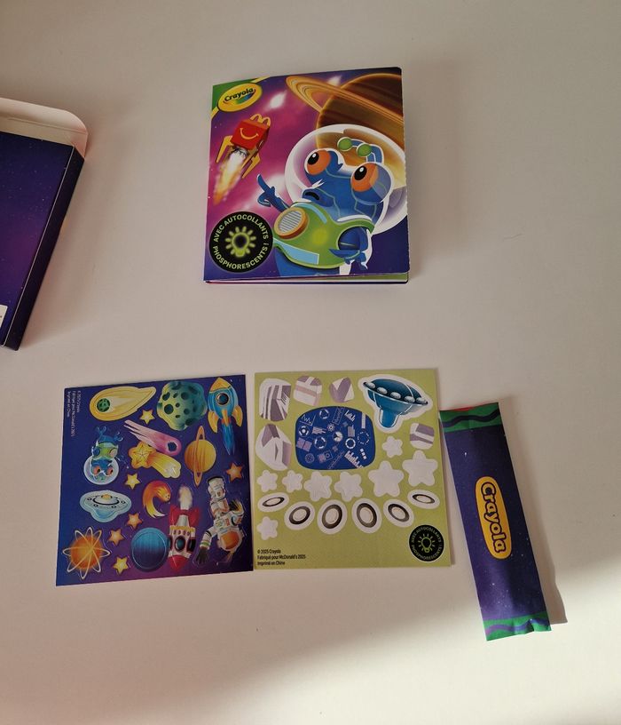Boite crayola avec crayons, jeux et autocollants neuf jamais utilisé juste ouvert pour les photos