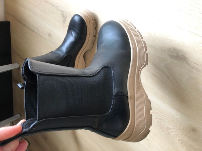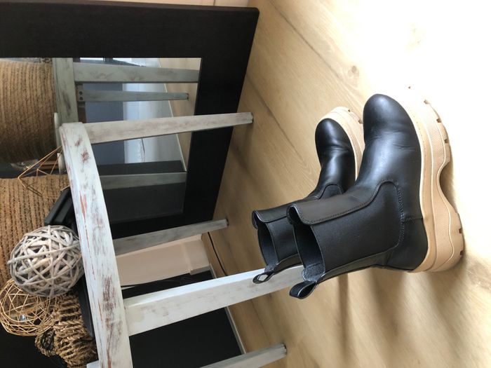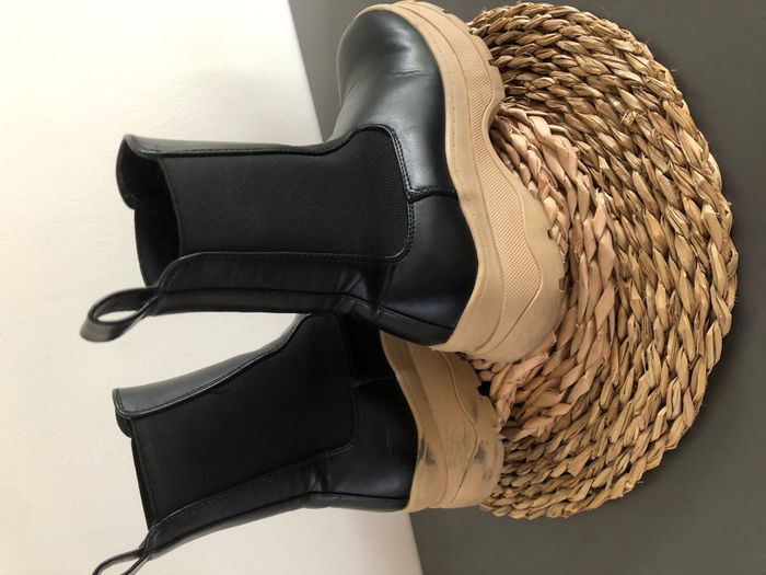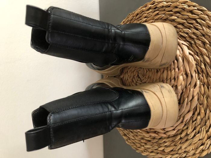 Bottines noires avec semelle beige, très bon état, confortable, quelques usures (voir photos)