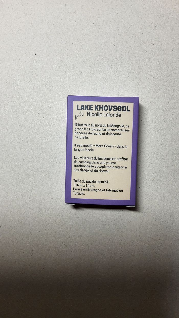 Mini puzzle trevell 99 pièces « lake khovsgol » par Nicolle Lalonde. Issu du coffret « la malle aux souvenirs ». Neuf, jamais assemblé.