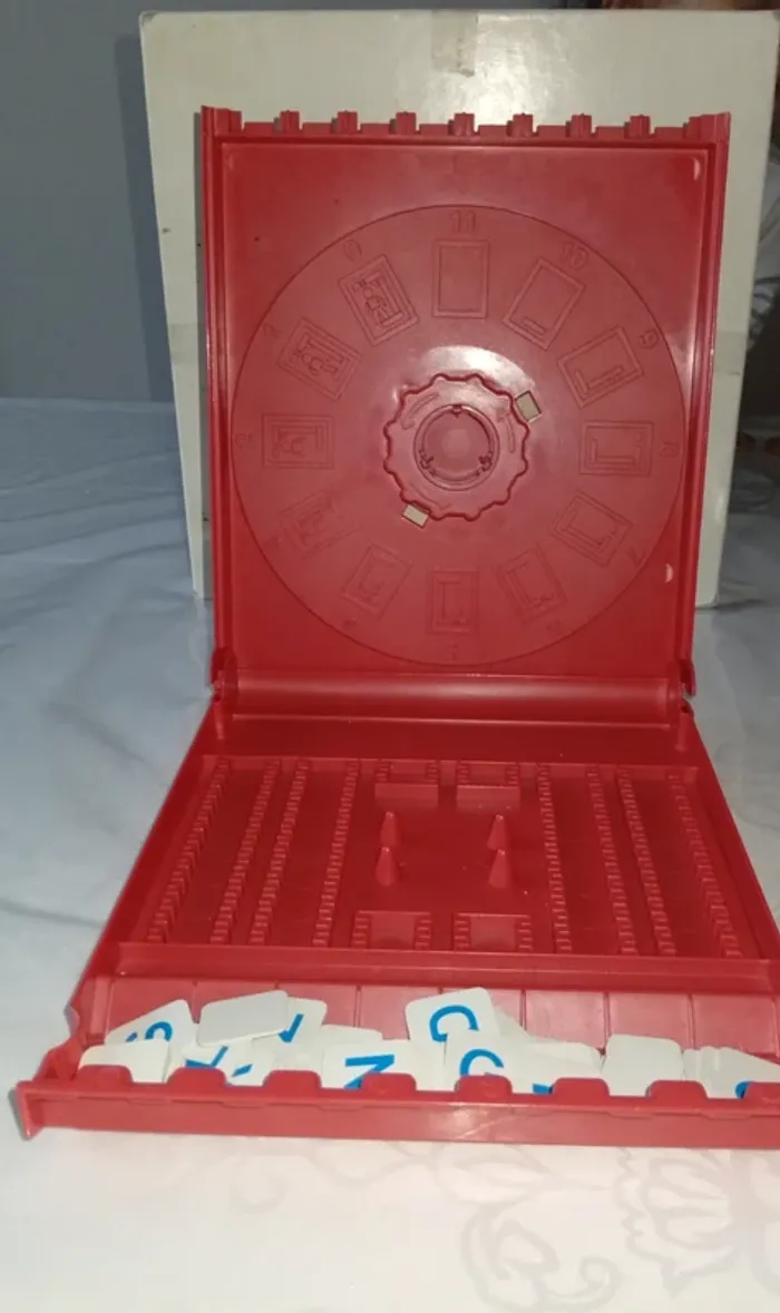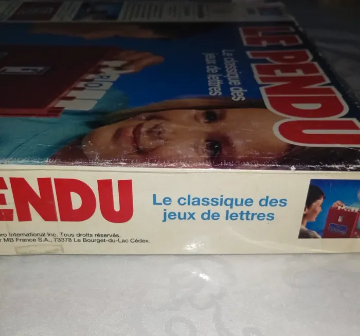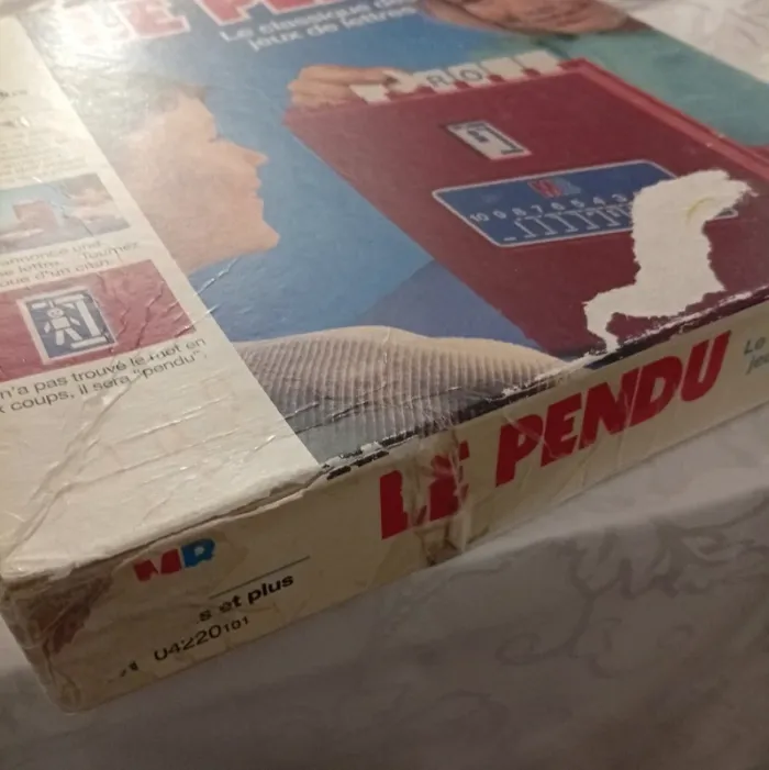 Devinez le mot de votre adversaire en 10 coups avant d'être pendu! Idéal pour s'amuser en famille à partir de 8 ans; Le carton est très abimé ( écriture a l'intérieur )et il manque des lettre il y en a 57 ( au lieu de 67 ) un des coté a été cassé voir photo au niveau de la fixation a l'ouverture .