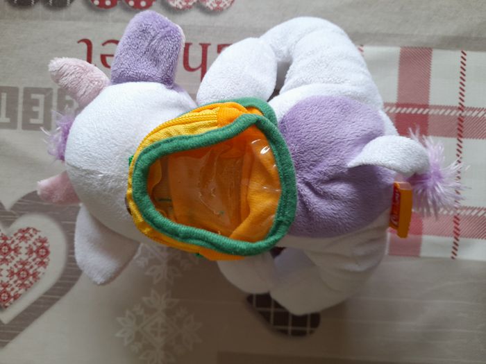Peluche sonore vache Fizzy blanc violet 19 cm Il faut appuyer sur le ventre de la vache pour l'entendre meugler 5 euros