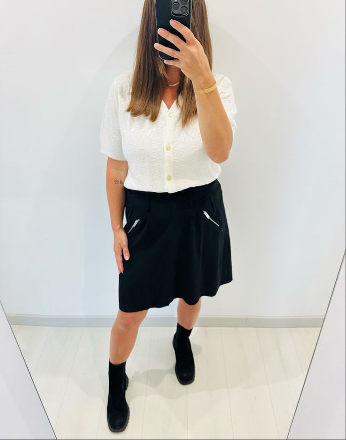 💕Jupe Lady blush 🤍Suédine / daim 🤍Noir 🤍Passants pour mettre une ceinture 🌸Le haut est également en vente dans mon dressing 💕Taille 44 🤍Taille à plat 47 cm 🤍Longueur 51 cm Je porte la jupe avec une pince à l’arrière pour la photo 💕Très bon état (10- J667) #jupe #daim #suedine #noir #look #moderne #tendance #automne