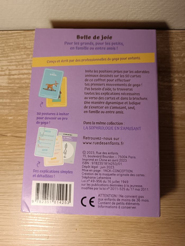 Le yoga en s'amusant - Bulle de joie, Rue des enfants 50 cartes pour se détendre Jeu neuf, jamais utilisé Boite très légèrement abîmée dans le dos, voir photo #yoga enfant Valeur neuf 16,95 euros