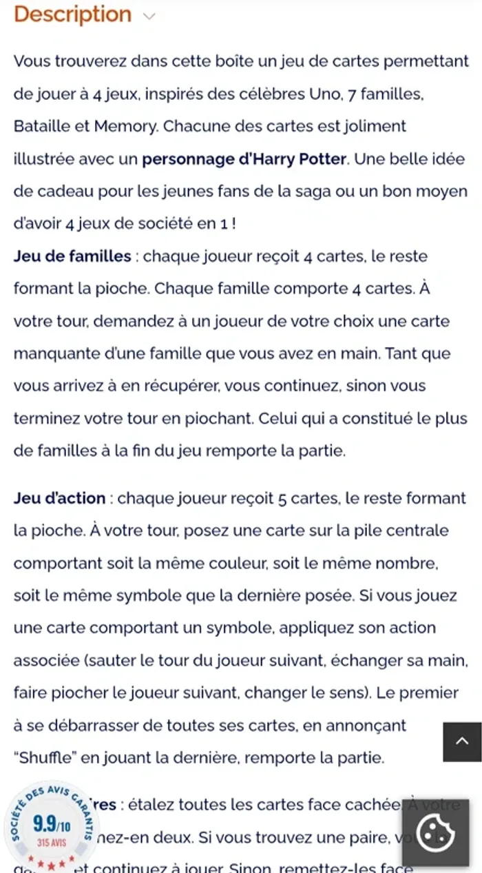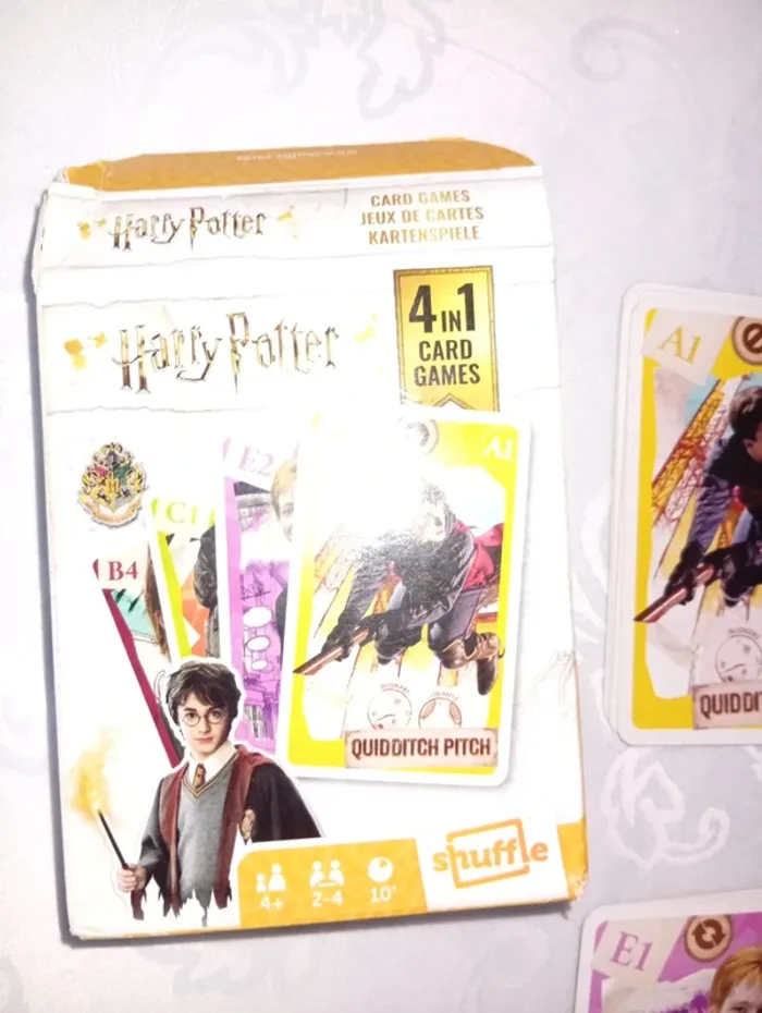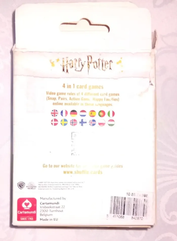 Jeu de famille Cartamundi Harry Potter Jeu de 7 Familles, jeu de paires, jeu d'action et jeu de Batailles. 32 cartes. De 2 à 4 joueurs Dès 4 ans. Le carton est abimé scotché mais le jeux complet