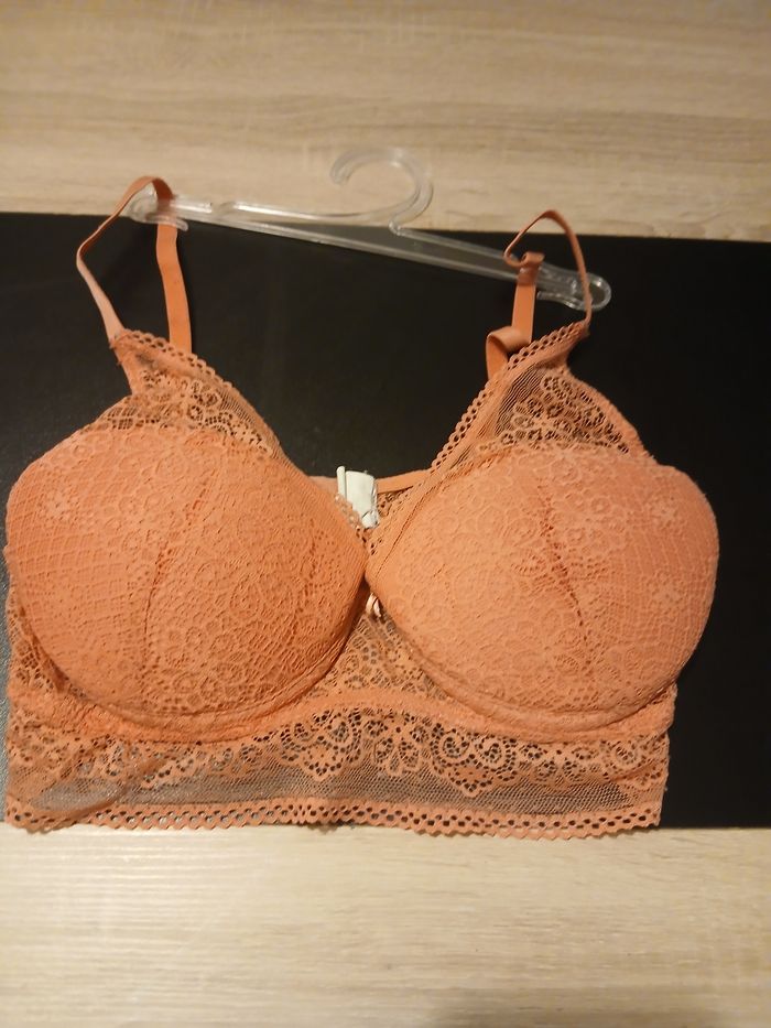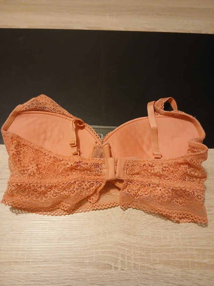Soutien gorge rembourré, avec dentelle, couleur corail, 85 C.