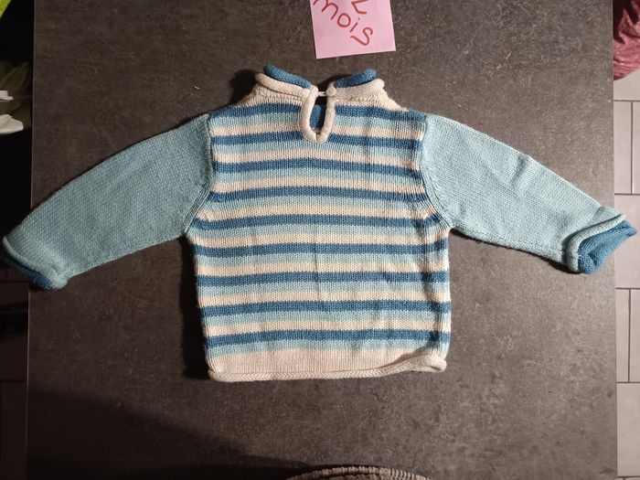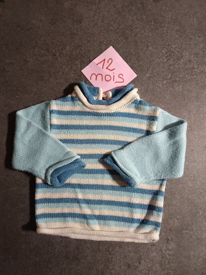 Pull bleu et beige à rayures, Très bon état Taille 12 mois