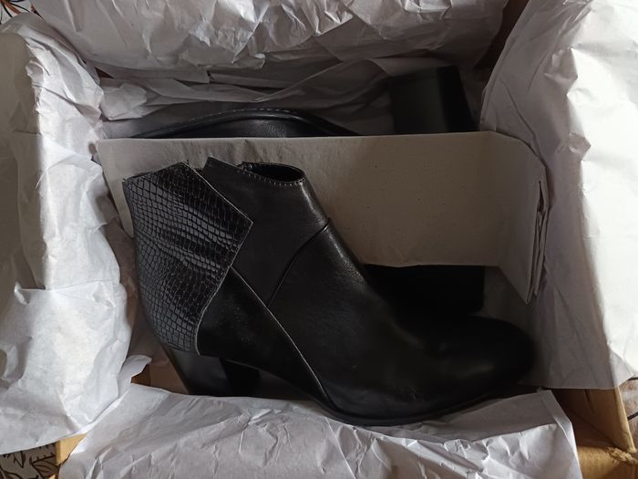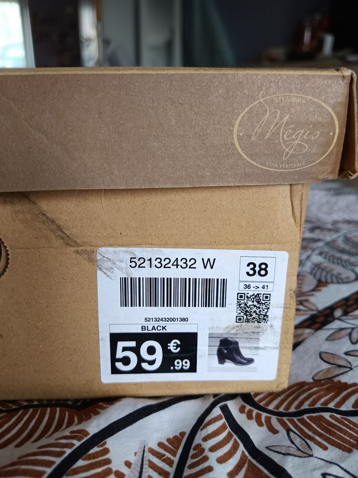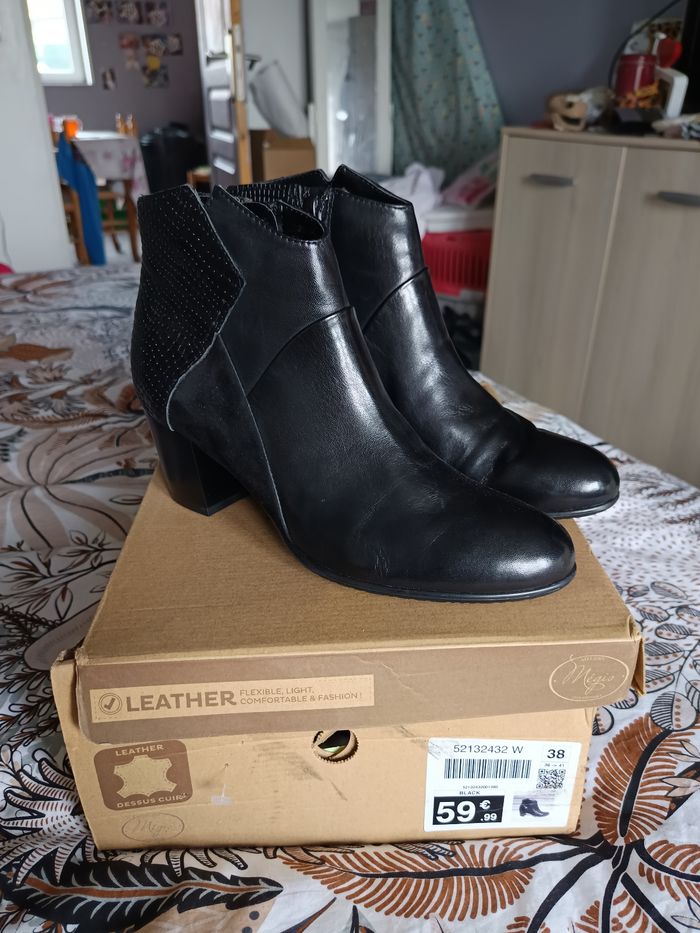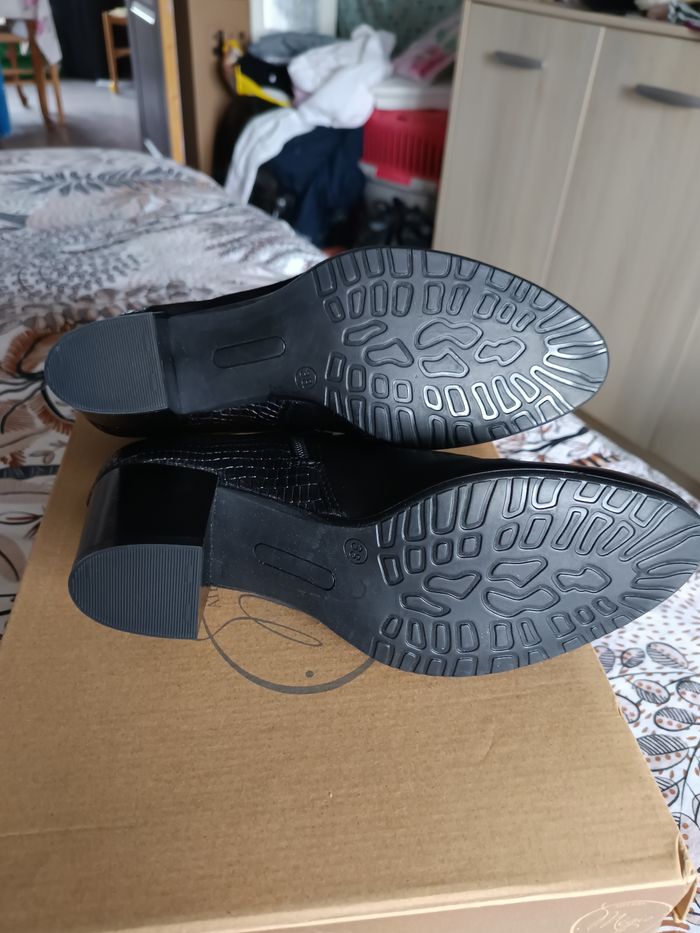 Jolie paire de bottines noires motifs crocosur l'arrière, Dessus en cuir, Légères, confortables et souples Pointure 38 NEUVES avec étiquette ! Valeur 59,99€