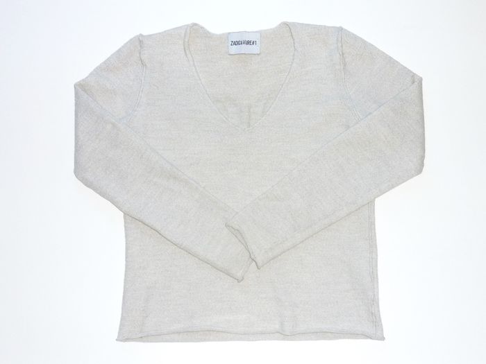 Pull gris de marque ZADIG et VOLTAIRE, en excellent état. Un classique de la marque, gris, col V, orné de son motif dans le dos.