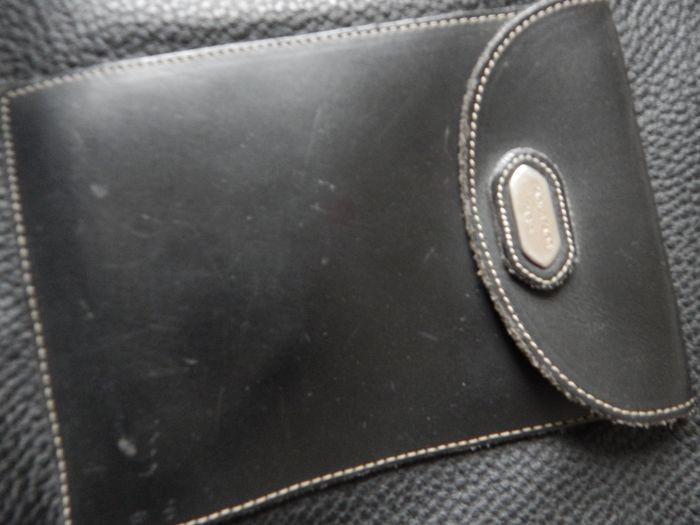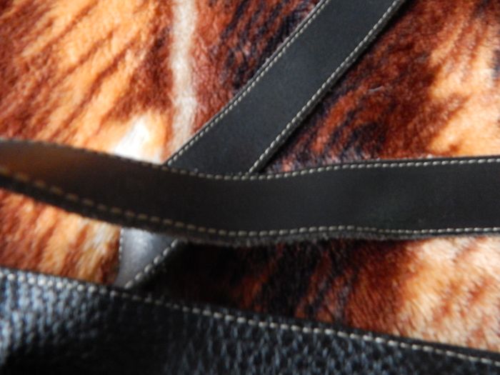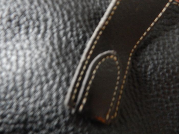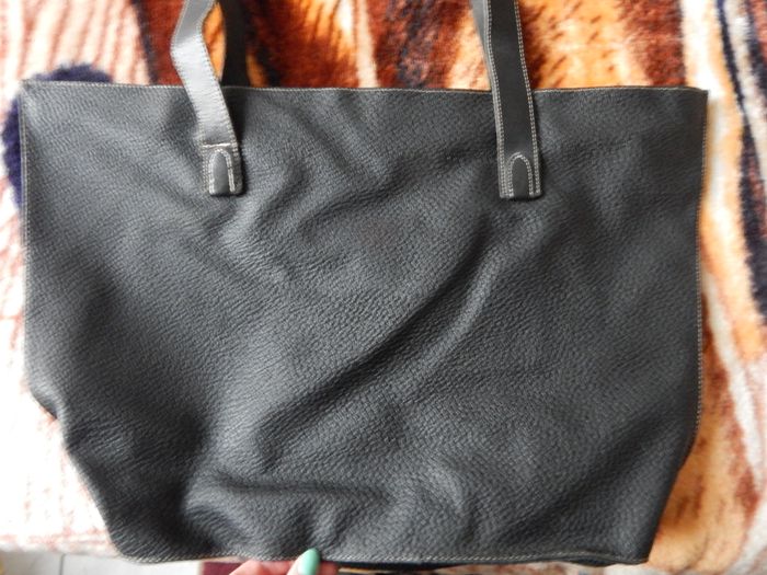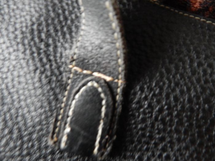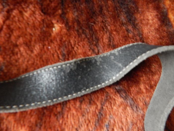 marque : Paquetage, marque déposé, made in France légèrement usé sur les lanières garniture : croute de cuir de vachette, 72% vinyl, 28% acrylique 52 cm de long, 35cm de haut