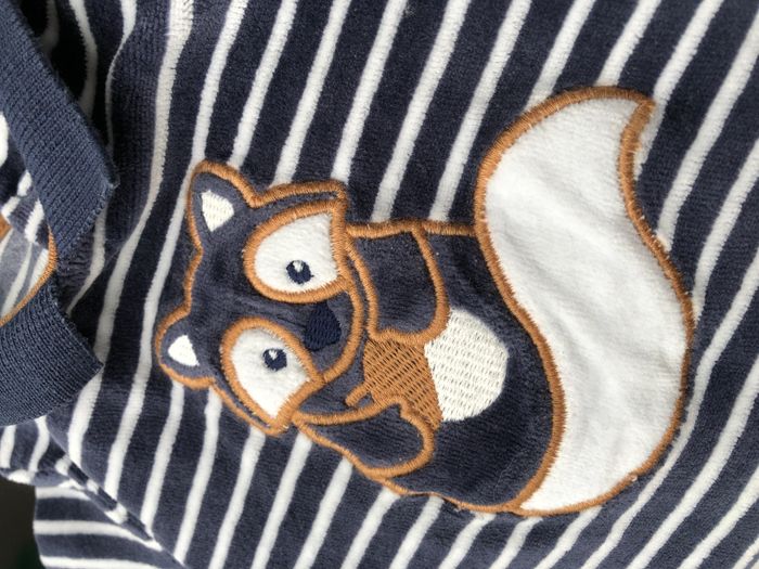 Pyjama hiver, grenouillère, dors bien Obaïbi, Taille 1 mois/ 53 cm. En velours rayé bleu marine et blanc, motifs écureuil. Petit col polo. Ouverture par pressions dans le dos. En excellent état, sans trou ni tache. Le velours est comme neuf. 🌸 Vous aimez cet article? Retrouvez tout mon naissance et 1 mois par ici: #naiss_1moiskrookette10 N’oubliez pas d’effacer vos filtres 😊 🌸 Vous aimez cet article ? N’oubliez pas de visiter le reste de mon dressing en filtrant les tailles.