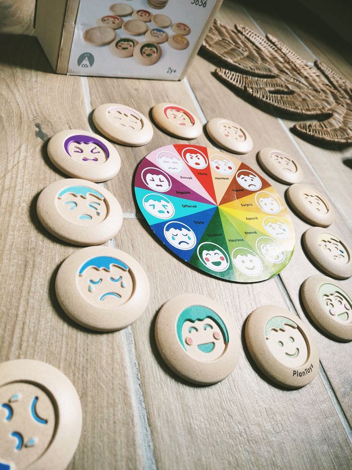 😀Jeu Montessori Le loto memo des émotions en bois marque Plan Toys
