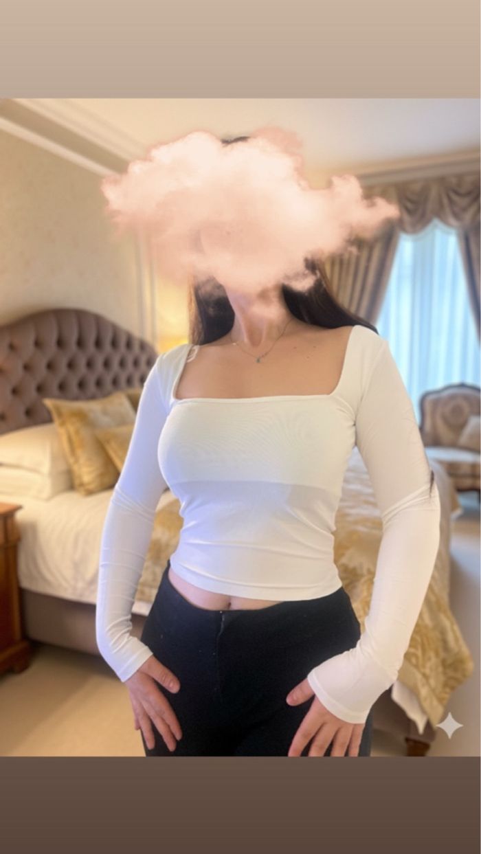 TOP BERSHKA à manches longues  BLANC col carré Neuf avec étiquette - photo numéro 1