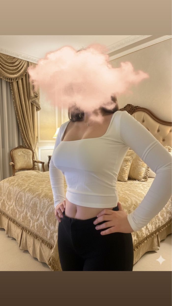 Très joli top Bershka blanc, coupe ajustée et flatteuse. Col carré à l'avant et à l'arrière, matière douce et extensible, agréable a porter. Idéal pour un look chic ou casual, facile à associer avec un jean, un pantalon ou une jupe.