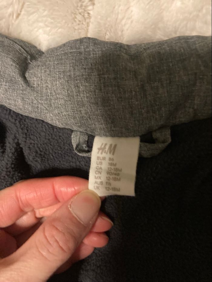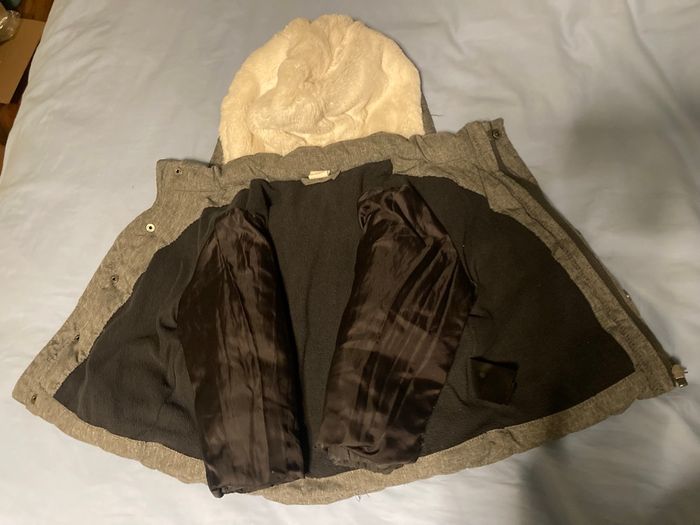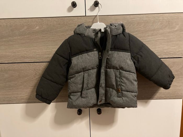 Doudoune gris pour bébé garçon taille 12 à 18 mois. Capuche doublée en fausse fourrure