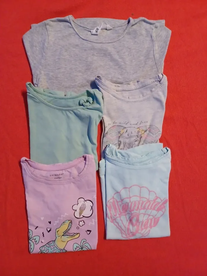 🩷 4 t-shirts manches courtes 🩶 1 t-shirt manches longues Très bon état Marques variées : H&M, Primark