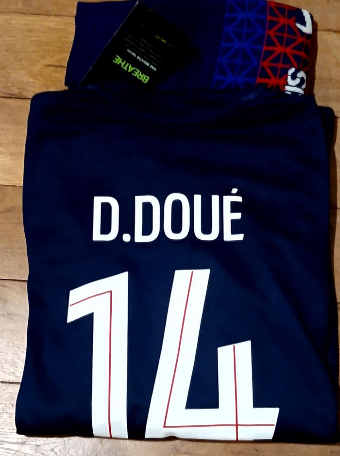 Maillot football PSG taille 14 ans modèle Doué Étoile domicile 2026