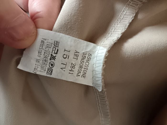 Bonjour Veste Gabardine parfait état taille M made Italie. Ton beige. Coton et sorona (matière inventée pour remplacer l elasthane). A bientôt