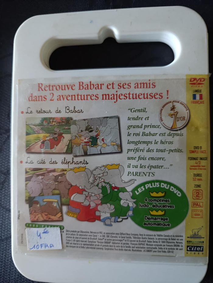 📀 DVD Les Aventures de Babar – Très bon état Petit prix, grand classique ! Parfait pour les moments calmes avec les enfants 🐘💛 🌟 Très bon état 🏡 Maison non fumeurs 📦 Envoi rapide et soigné 💶 Prix mini : 1€ 📚 Réduction si lot, n’hésite pas à jeter un œil à mes autres articles enfants ! #regent57dvd #p4 #202