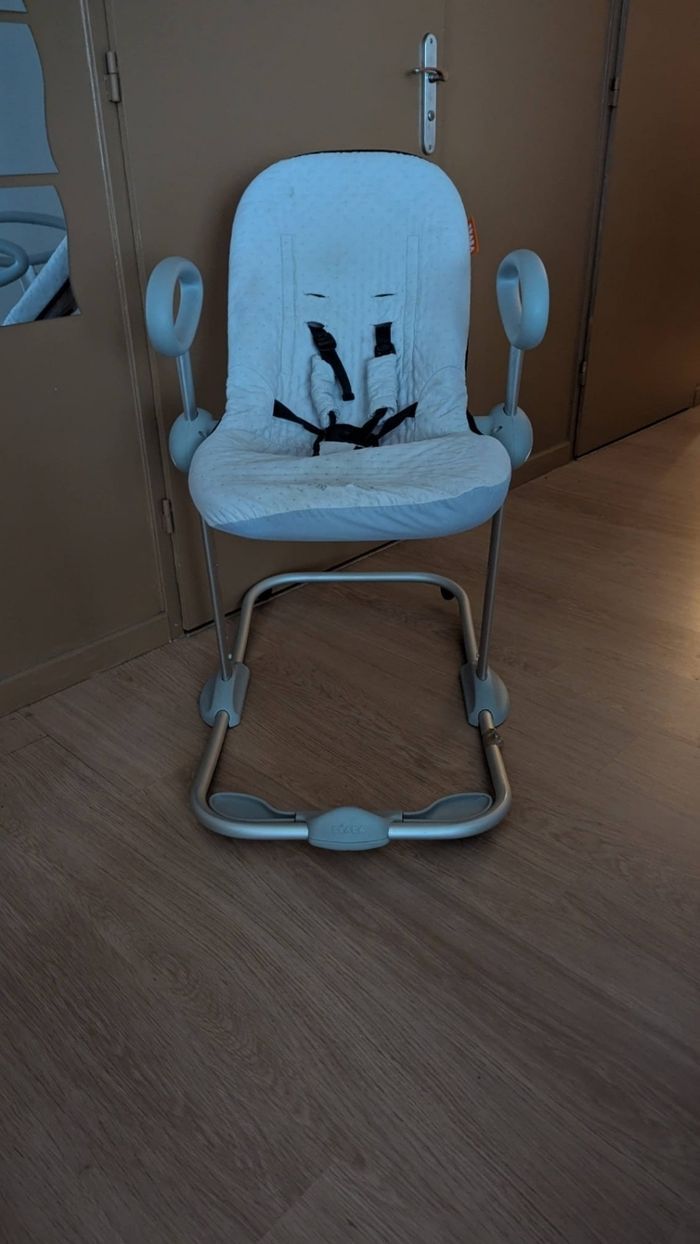 Bonjour , je vends ce transat qui est en hauteur de couleur grise, marque béaba up and down (acheté à 130€) Le transat s'incline pour convenir à tout type d'âge. Il peut servir également comme chaise haute au niveau d'une table à manger car il est haut. J'ai mis pour info en photo l'endroit où il y a une petite déchirure (qui sera au niveau des pieds de l'enfant) A retirer sur place, Bonne journée 😊