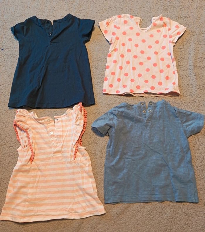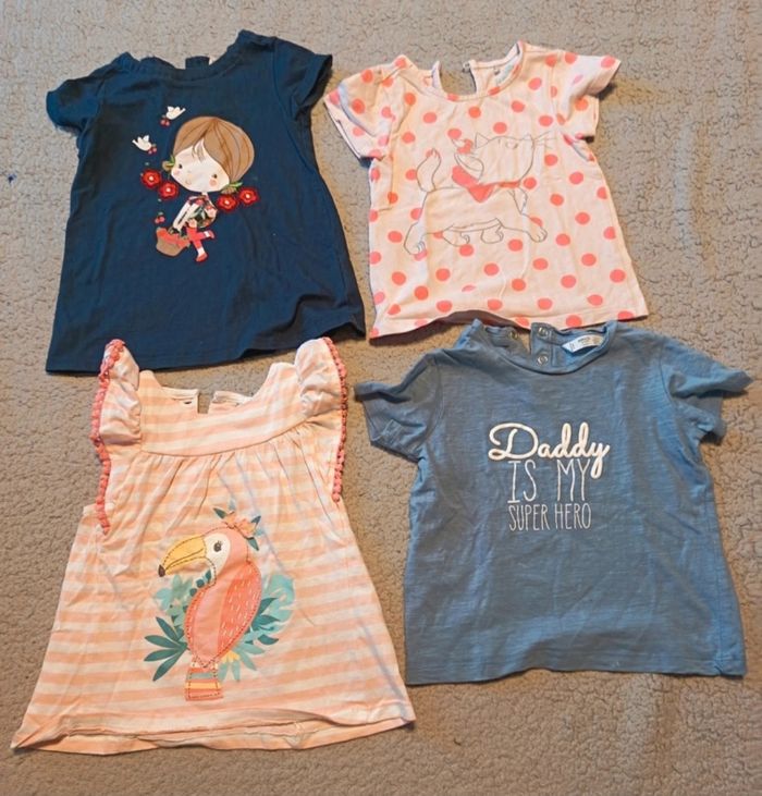 💮1 débardeur 💮3 tee-shirts manches courtes 💮Très bon état 💮 Différentes marques 💮18 mois 💮 Possibilité de séparer le lot (1€ le tee-shirt)