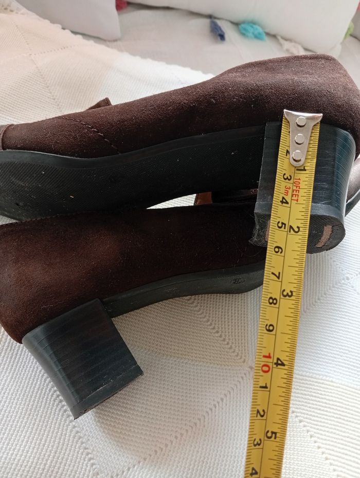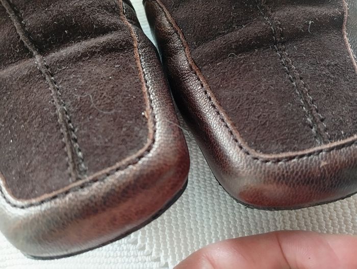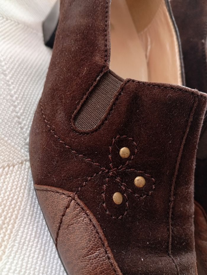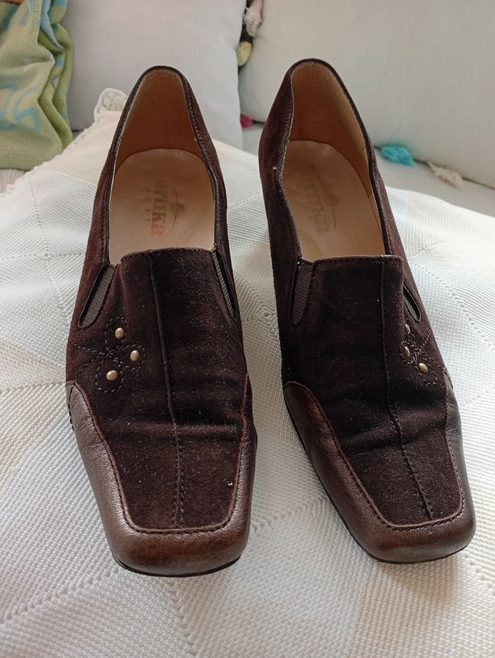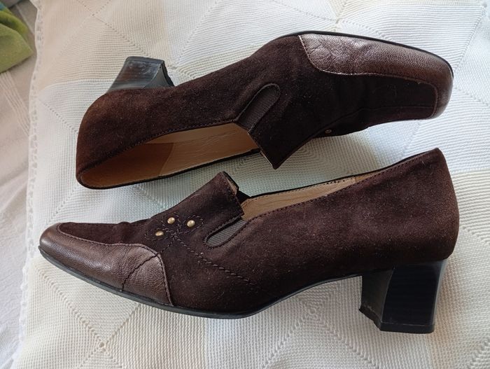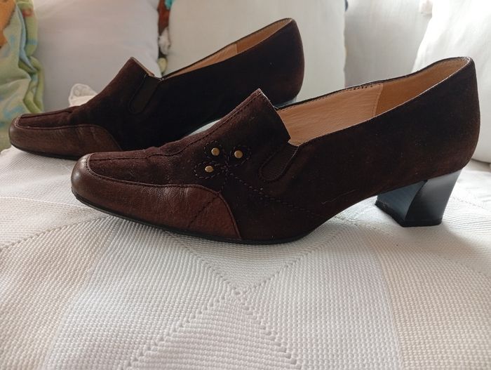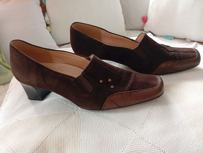 Remise sur lot activé. Chaussures à talons en cuir et daim ( cuir velours) couleur marron en très bon état. Le bout du pied gauche à une petite "rayure". Talons et bout carré. Marque: Artika Soft Pointure: 38 Talon: 4,5cm Plus de mesures en photos. #chaussuresartikasoft #talonsartikasoft #chaussuresartikasoft38 #chaussuresatalonsvintage #chaussuresatalons38 #chaussuresatalonsartika