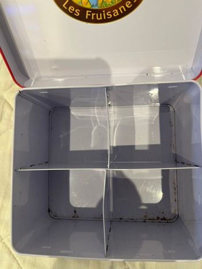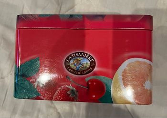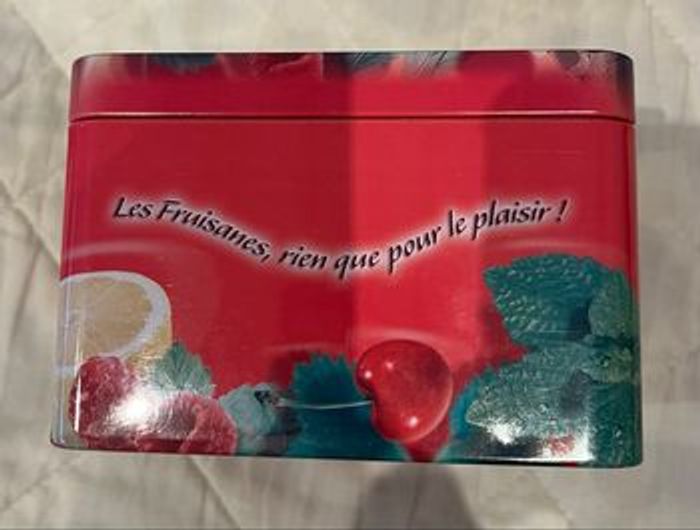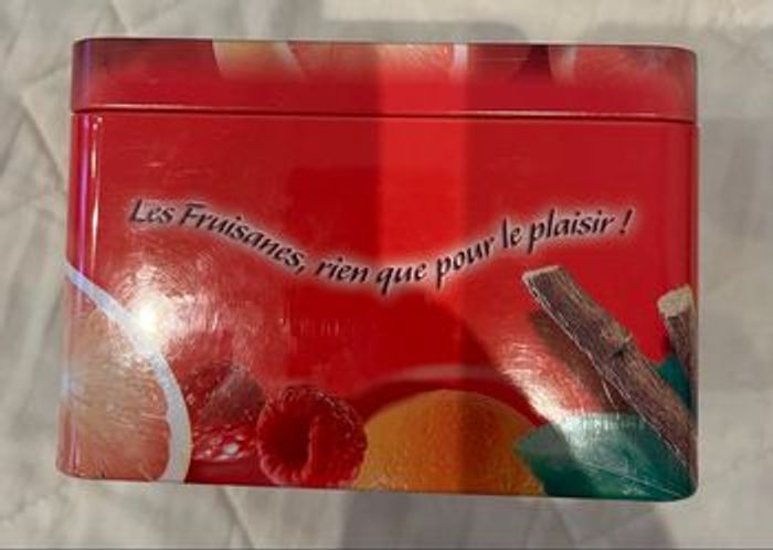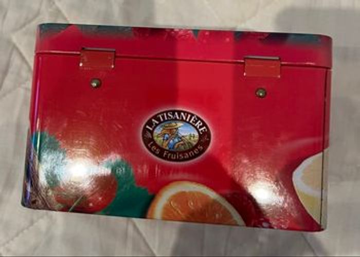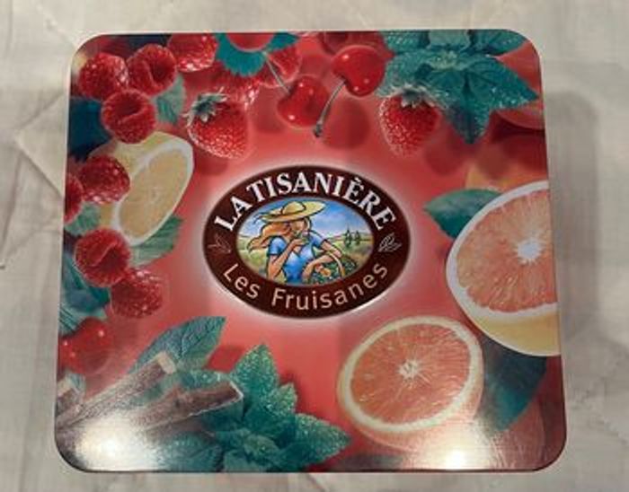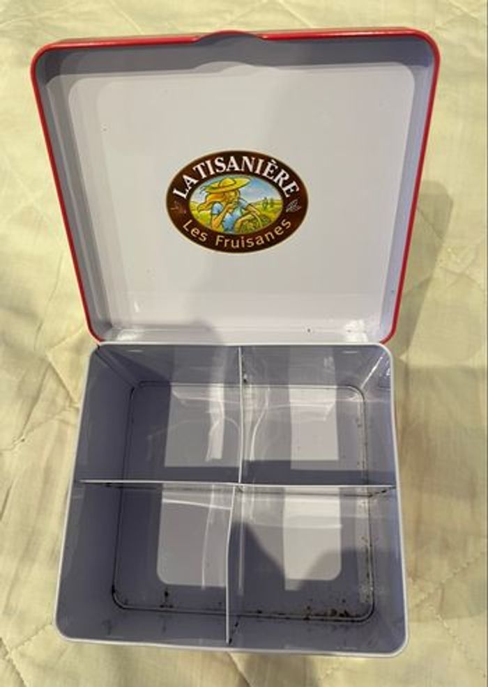 Boîte à thé En métal Bon état extérieur Un tout petit peu rouillé à l’intérieur voir photo. Possibilité de mettre un fond. Envoi rapide