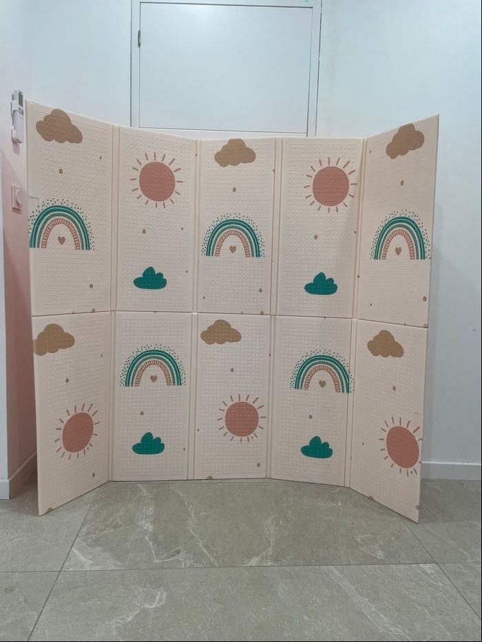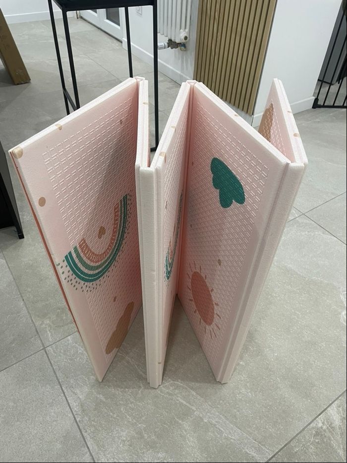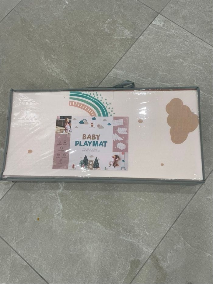 Je vends ce tapis d'éveil évolutif neuf jamais utilisé dans son emballage et sous carton Il mesure 150cmx180cm et 1cm d'épaisseur Idéal pour le développement de la motricité Il est réversible, évolutif, non toxique Nettoyage très simple au savon