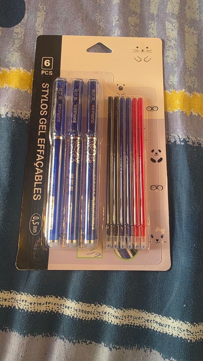 3 stylos gel effaçables