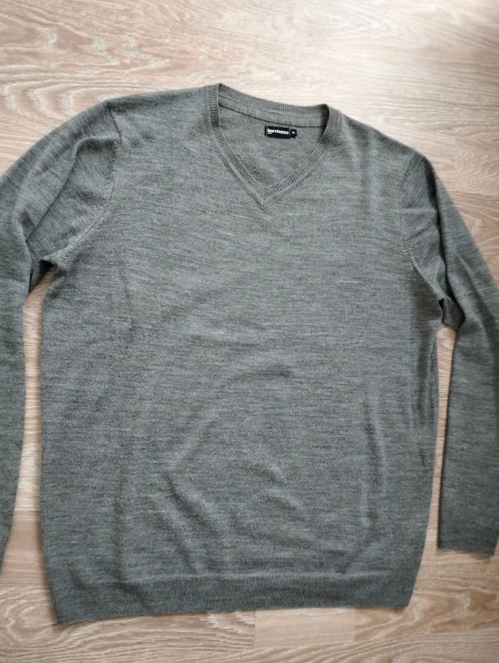 Pull col V gris, légères bouloches mais reste en bon état