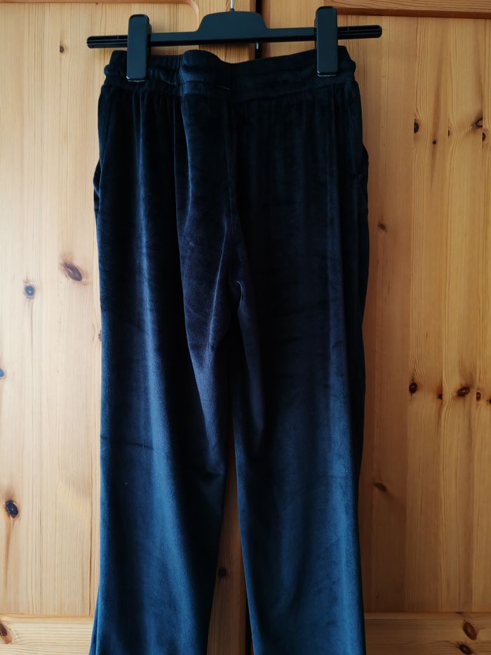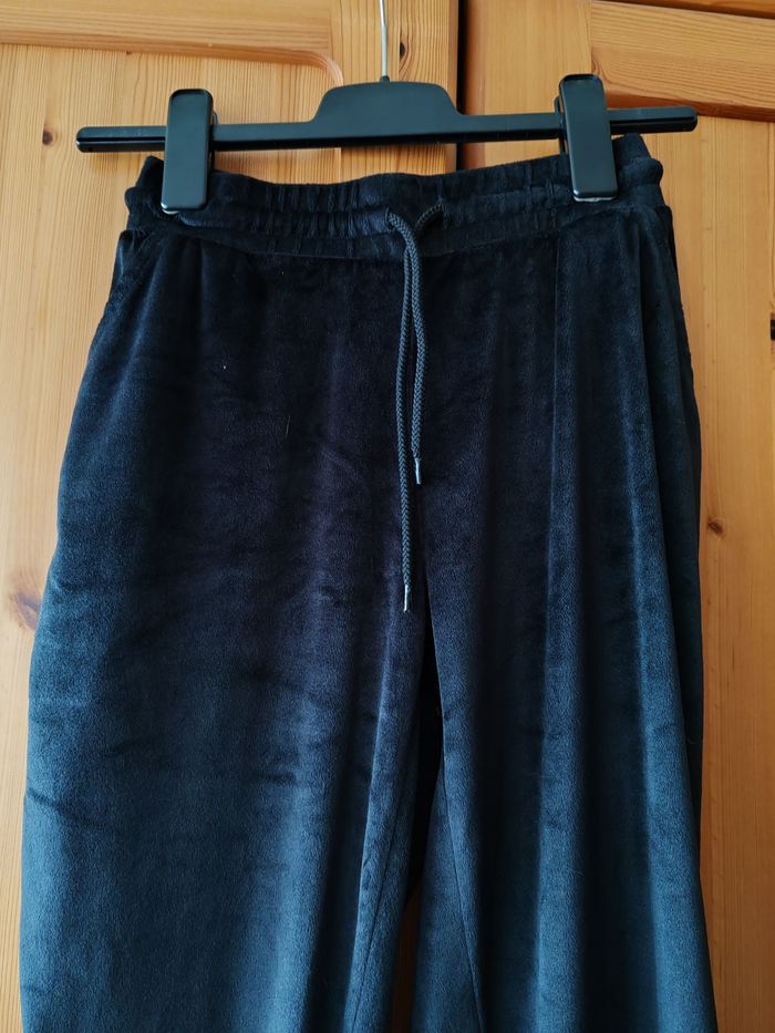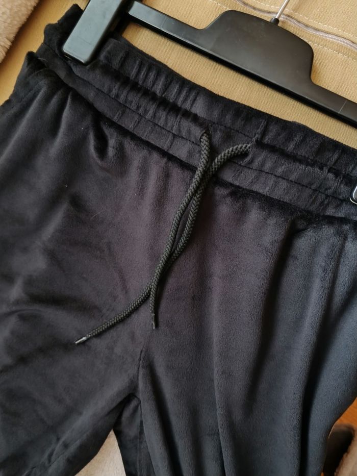 Pantalon de jogging en velours uni noir. Taille élastique et lien à nouer.