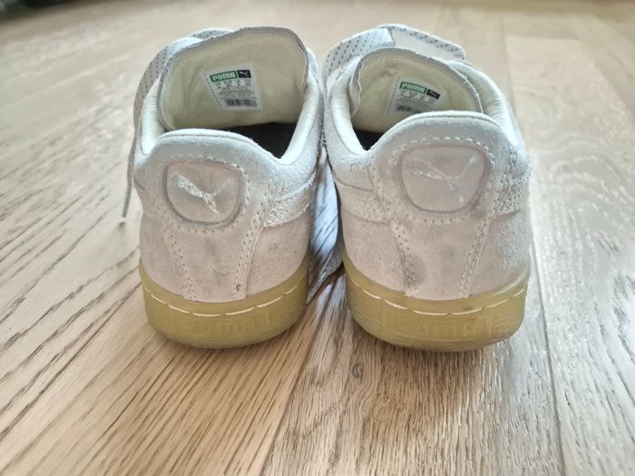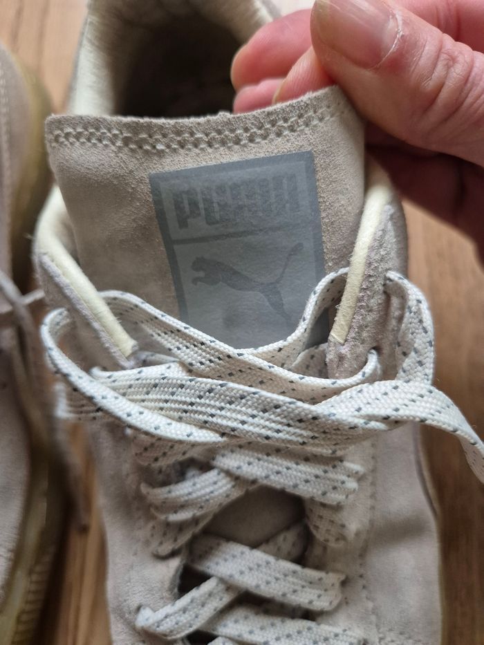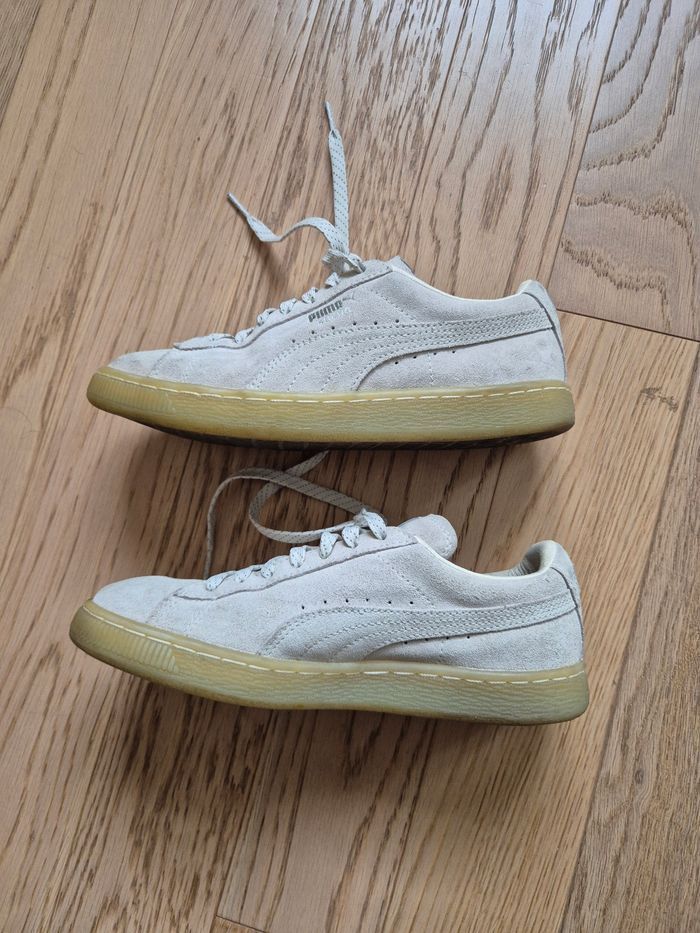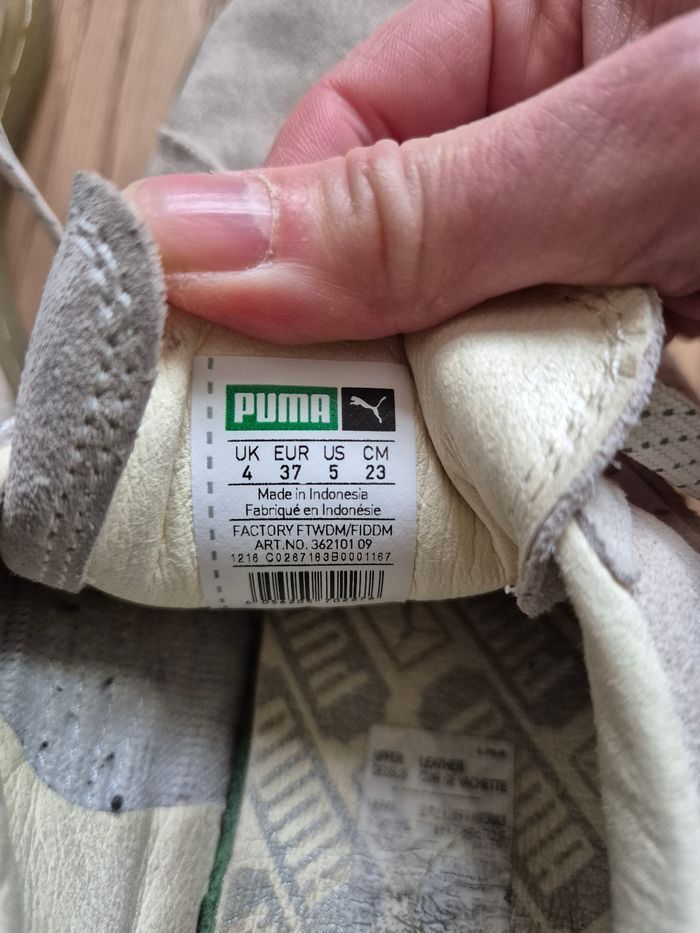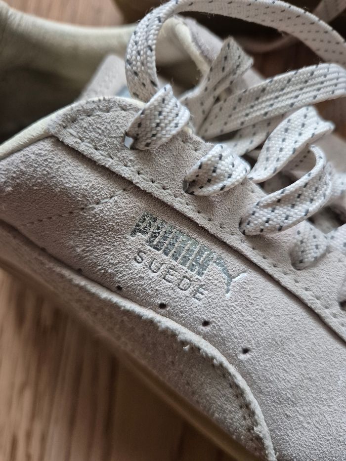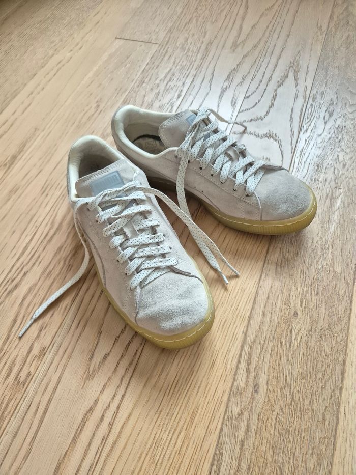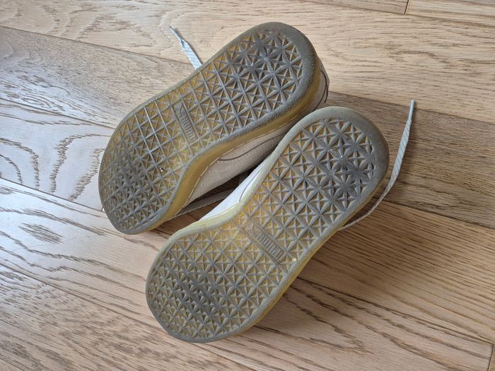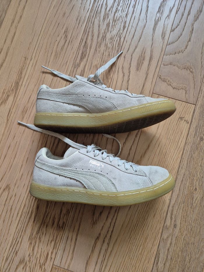 Paire de baskets sneakers Puma Suede pour femme, en très bon état (traces d'usage) - Marque : Puma modèle Suède en cuir - Pointure : 37 - Coloris : beige - Maison non fumeur et sans animaux #elfedneigeschaussures #elfedneigesfemme