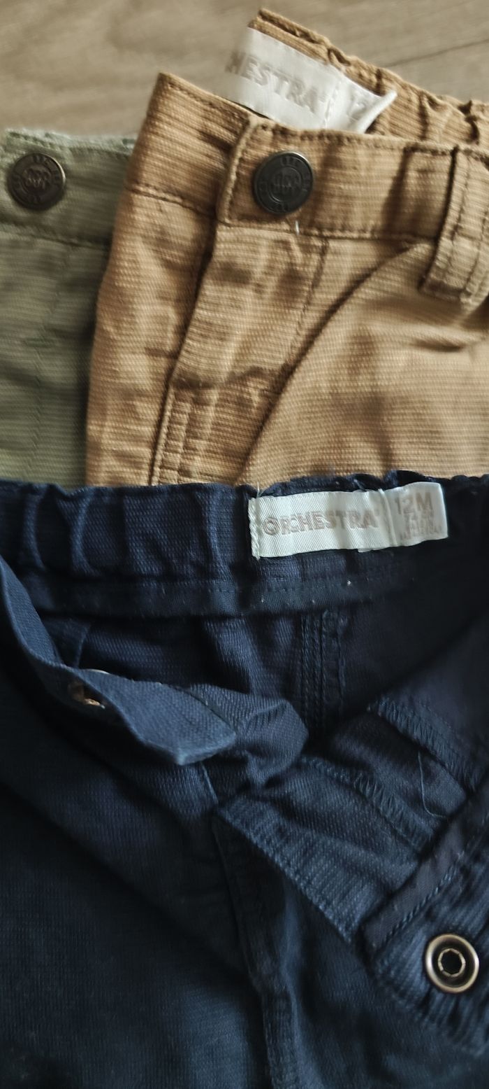 Lot de 6 pantalons et un short : - 1 short en 1 an et 1/2 : Name It - 1 jean en 12 mois : Gémo - 1 pantalon beige 12 mois : Obaïbi - 3 pantalons vert, beige et bleu 12 mois : Orchestra - 1 jogging vert 12 mois : Storytelling Tous en parfait état