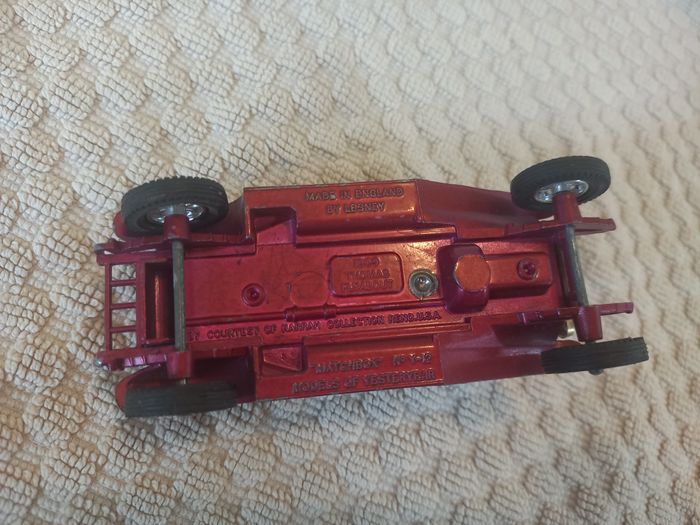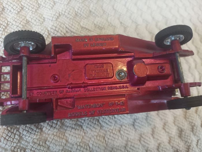 Superbe véhicule miniature 1909 Thomas Flyabout, collection Models of Yesterday. Modèle Matchbox n°Y-12, fabriqué en Angleterre par Lesney. ⚠️ Quelques éclats de peinture visibles (voir photo), cohérents avec son âge. ✔️ Pièce vintage idéale pour collectionneurs. N’hésite pas si tu veux plus d’infos ou des photos supplémentaires 😊