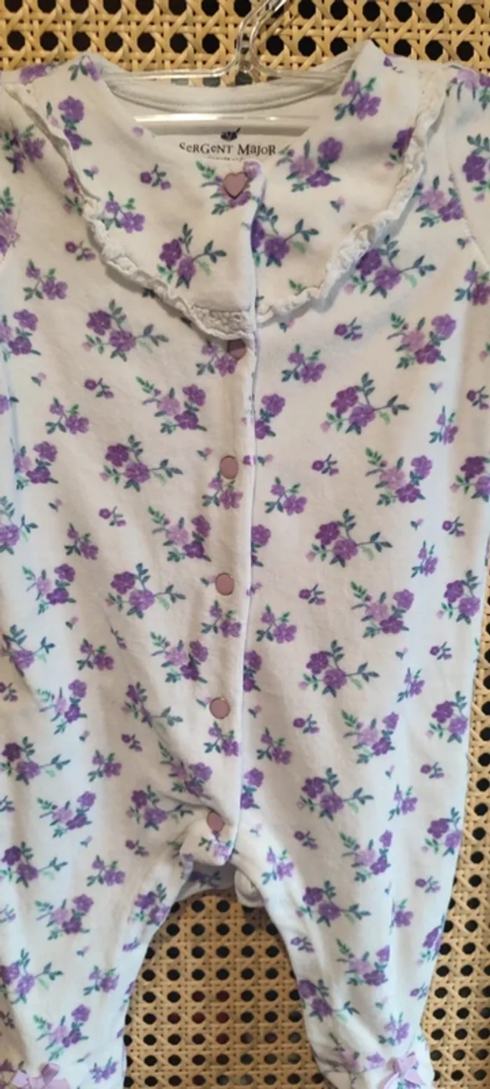 En parfait état proche du neuf Taille 3 mois - 60 cm 🪻 sergent major Taille 3 mois - 59 cm 🌸 Tape à l'œil Pieds et boutons pressions en parfait état 👍🏻 🌸🌷