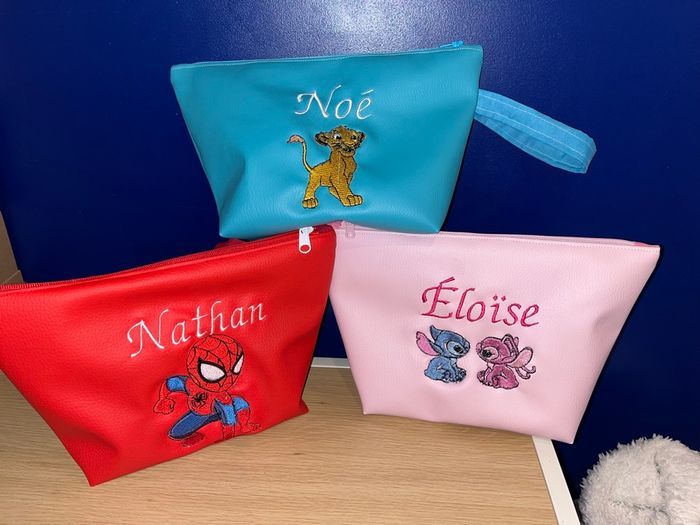 Trousse fait main multi usage Tissu similicuir couleur au choix Dessin et prénom brodé D’autre model de dessin sont disponibles