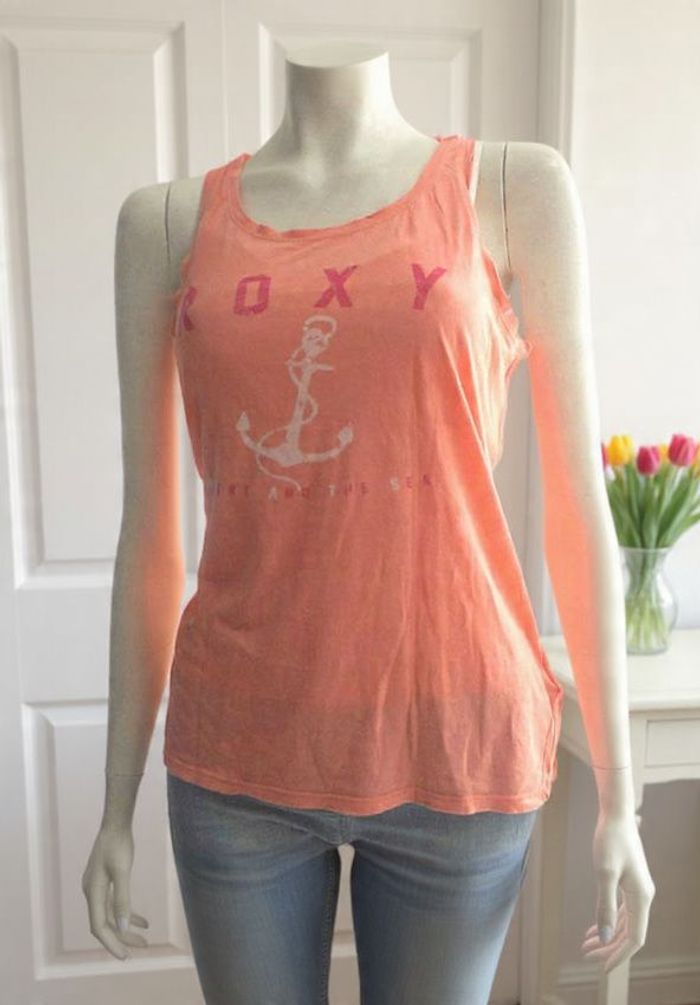 Débardeur Roxy Taille : 16 ans Couleur : Saumon Motif : Ancre de marine à l’avant Matière : 100 % coton État : Excellent ➡️ Look décontracté et stylé, idéal pour l’été ou les vacances en bord de mer !