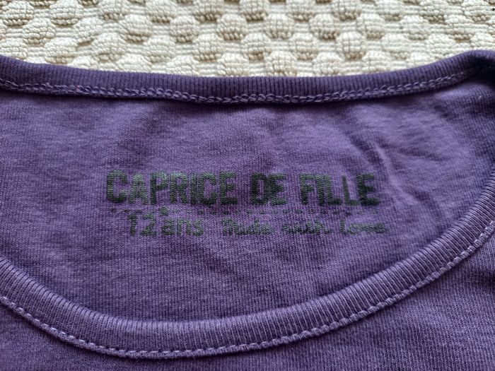 Joli t-shirt violet à manches longues avec dessins et inscriptions en noir et rose, pour un style à la fois doux et tendance 🌸! Marque : Caprice de fille Taille : 12 ans Matière : 100% coton ✨ En très bon état, porté peu de fois. Parfait pour le quotidien ou l’école !