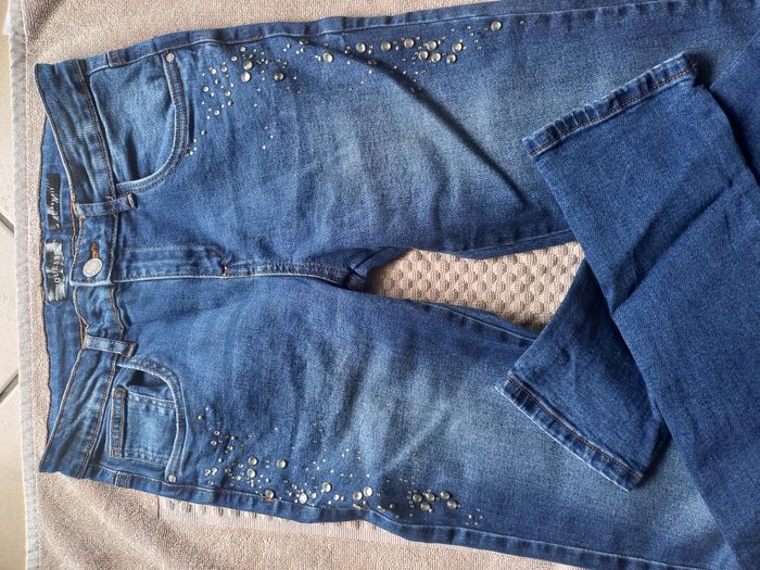 Très peu porté, bien entretenu, ce jean skinny GUESS est parfait pour un look tendance et confortable. Détail stylé : strass discrets à l’avant des deux jambes + écusson GUESS au dos. Coupe : Skinny Fit Fermeture : zip + bouton à l’avant Poches arrière avec logo Matière : 98 % coton, 2 % élasthanne (Spandex) 📏 Mesures à plat : Taille (au niveau des passants) : env. 35 cm Longueur totale : env. 95 cm Longueur intérieure jambe : env. 71 cm