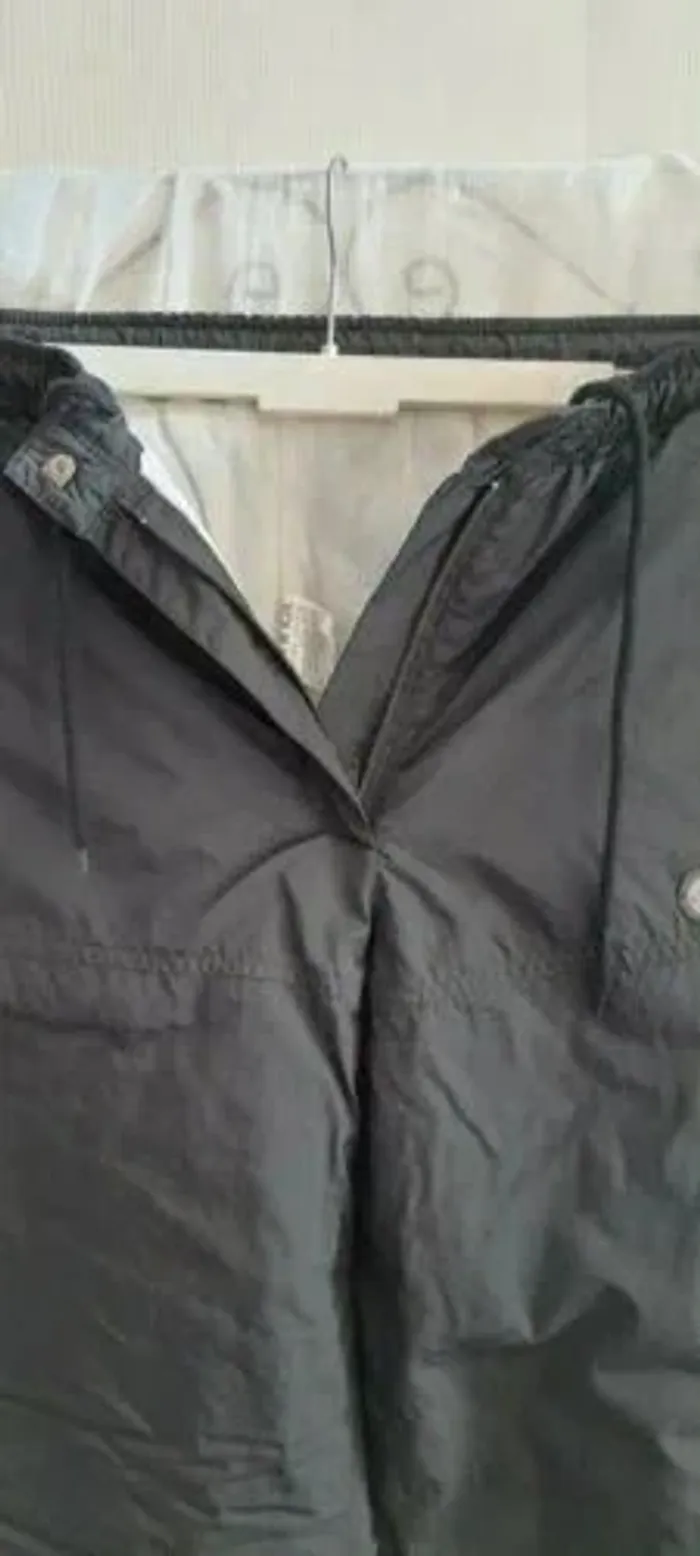 Pantalon de ski noir, taille 42, Marque #EIDER, made in France, 100% polyamide, doublure 100% polyester Taille élastiquée avec crochet et cordon de serrage, 2 Poches côté avec fermeture éclair, bas élastiqué Dimensions à plat: taille 42 cm., hauteur 102 cm., entrejambe 70 cm.