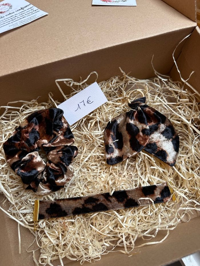 Coffret léopard fait main : Un chouchou Un bracelet Un porte clé