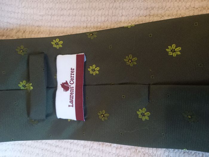 Cravate vert kaki à fleurs – Style vintage chic – Laurent Cerrer - photo numéro 3