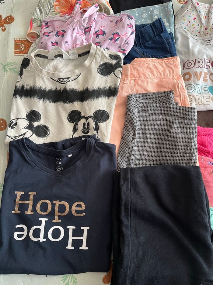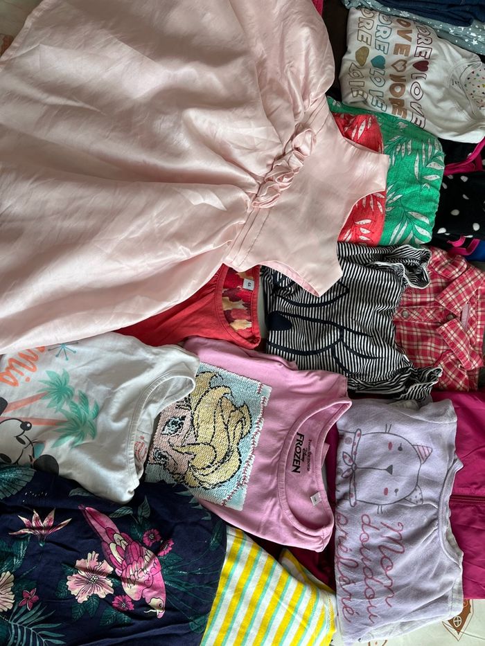 Lot de 37 vêtements idéal pour revendeur Il y a diverses tailles pour fille. De bébé à ado. Diverses marques orchestra Disney name it kiabi Bon état général pour le lot 15€