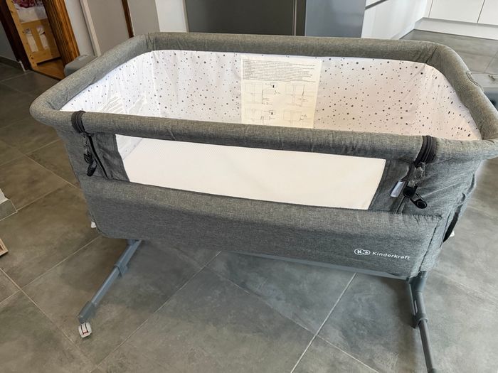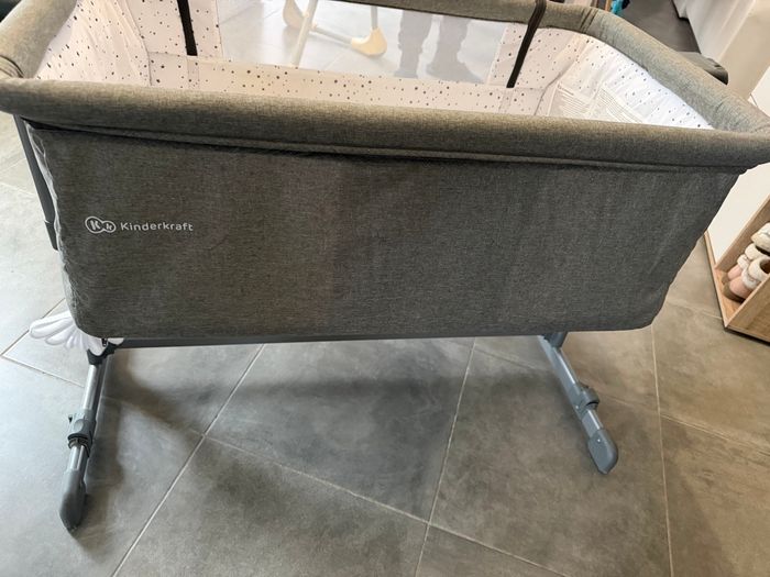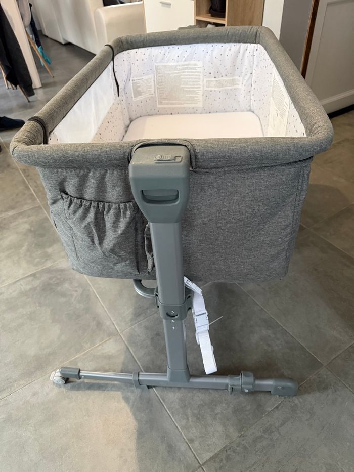 Cododo KinderKraft Neste up gris clair Utilisable dès la naissance jusqu'à 9 kg (ou jusqu'à ce que bébé s'assoit) Lit d'appoint ou indépendant Réglable en hauteur Inclinaison réglable pour bébé avec reflux ou malade Fixation sécurisée au lit des parents grâce a 2 sangles Filet de ventilation + côté rabattable Entièrement déhoussable Vendu avec son matelas, sa notice et sa housse de transport Facile à monter et démonter Très bon État, très peu utilisé Remise en mains propre de préférence