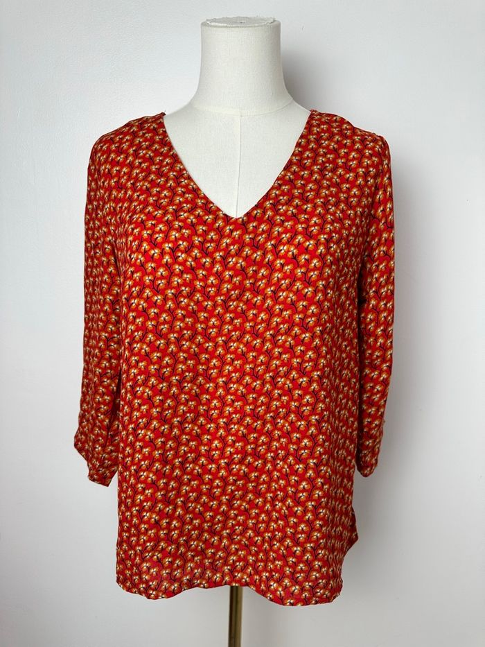 💕Blouse cerise blue 🤍Motifs 🤍Manches 3/4 💕Taille M 🤍Mesure aisselle 49 cm 🤍Longueur 62 cm 💕Très bon état 💕100 % polyester (45 - #blouse #ceriseblue #motifs