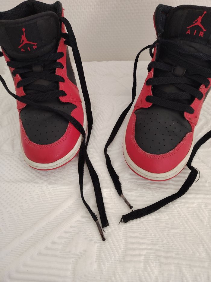 OPPORTUNITÉ À SAISIR 🔥 Je liquide mon stock de Jordan ! Profitez de ce lot exceptionnel comprenant deux modèles iconiques. Idéal pour un achat groupé ou pour revendeur. ​1. Jordan 1 High Dark Mocha (Taille 37) ​État : Très propre, semelles avec étoiles encore visibles. ​Détails : Plis de marche naturels. Un petit accroc de 1 cm sur la doublure intérieure au niveau de la cheville (voir photos). ​2. Jordan 1 Mid Black Red / Bred (Taille 36.5) ​État : Cuir impeccable, semelles quasi neuves. ​Détails : Il manque les petits embouts en plastique (ferrets) sur deux lacets. Ne gêne pas l'utilisation. ​✅ Paires authentiques 📦 Envoi ultra rapide (sous 24h) ✨ Colis soigné et protégé