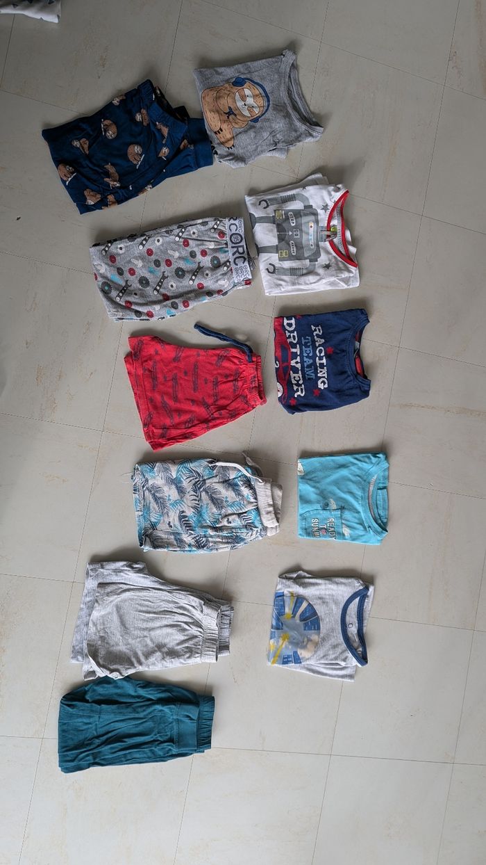 Je vends un lot de pyjamas enfants garçons 5 ans 2 pyjamas long 2 pyjamas court 2 shorts de pyjama 1 pantalon de pyjama 1 haut manche longue de pyjama