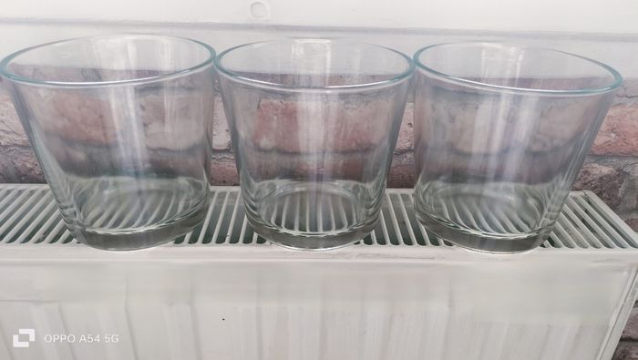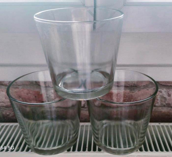 lot de 3 gros verres en verre transparent. - Type de produit : Lot de 3 gros verres - Matière : Verre transparent - Compatibilité : Lave-vaisselle - Hauteur 13 cm - Diamètre 13,5 cm - Très bon état 9€
