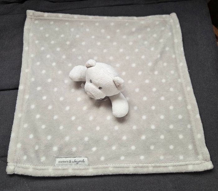 Doudou ours carré plat polaire gris à pois blanc - Blankets & Beyond