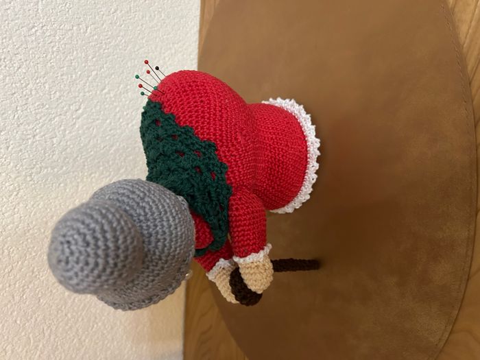 Je vous propose cette mamy faite main neuve pour stocker vos épingles de couture. Dimensions: Largeur 18 cm Hauteur 23 cm Maison non-fumeur