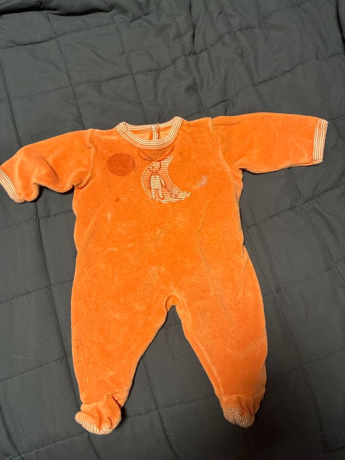 Pyjama garçon orange fermeture par pression dans le dos dessin de lune et lapin sur le devant